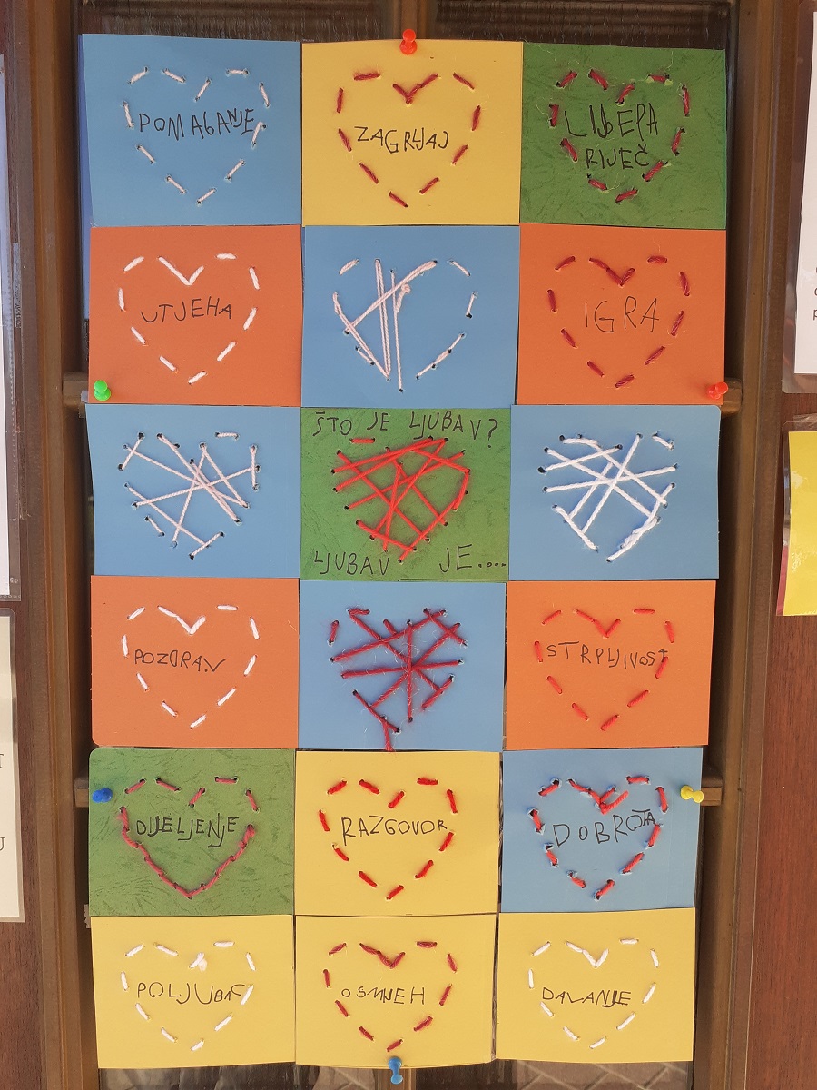 Svakodnevno u vrtiću kod djece potičemo i razvijamo ljubav kroz različite aktivnosti koje u svojoj osnovi podrazumijevaju mala djela ljubavi, dijeljenja, pomaganja, razumijevanja, zagrljaja, pomoći, utjehe...