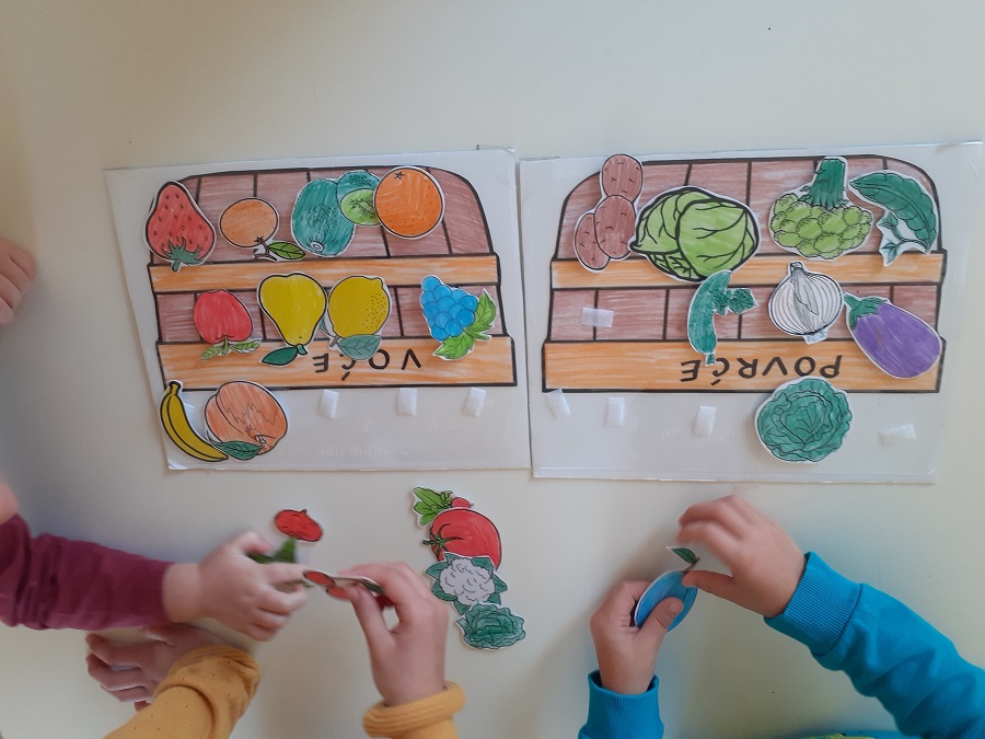 Svako godišnje doba za sobom nosi neka svoja obilježja po kojima ih raspoznajemo. Jesen je zadužena za boje i obilje plodova kojima se svakako posebno veselimo zajedno s djecom. U našem vrtiću jesen dočekujemo s radošću i pridajemo joj posebnu važnost. Osim što početkom rujna s veseljem dočekujemo i prihvaćamo nove prijatelje koji dolaze u vrtić. Jesen je vrijeme kada ubiremo plodove našeg rada u povrtnjaku ( od one male sjemenke koju smo stavili u zemlju, zalijevali ju i brinuli o njoj, biljke koja je iz nje izrasla i koju smo zasadili u vrtu, pa sve do zrelog ploda). U suradnji s našim kuharicama od sakupljenog povrća u vrtu pripremaju nam salatu koju jedemo za ručak. Voće i povrće koristili smo za različite aktivnosti: klasifikaciju, istraživanje boja, veličina, oblika, tekstura, okusa, mirisa... Osim likovnih aktivnosti zastupljene su bile i priče, brojalice, pjesme, zagonetke, modeliranje, oblikovanje, različite igre u centru kuhinje kroz koje smo razvijali govor i bogatili riječnik kod djece te su na taj način plodovi postali neprocijenjivi pedagoški materijal za učenje...