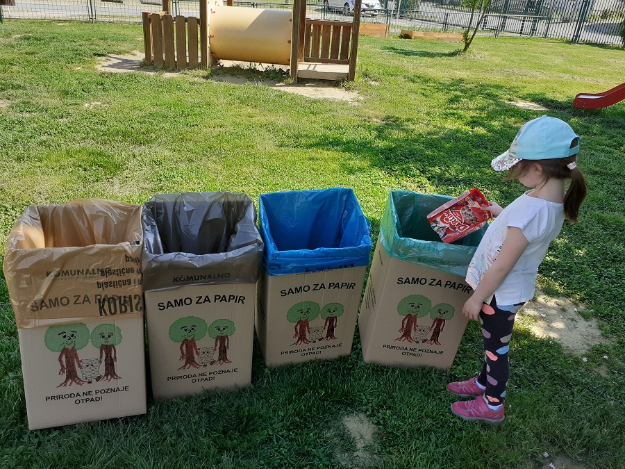 Ovim putem zahvaljujemo se Komunalnom poduzeću na donaciji tri posude za odvajanje otpada u obliku životinja (staklo, papir i plastika) koje svakodnevno koristimo boravkom djece na otvorenom.